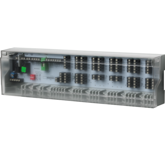 Prijungimo blokas, skirtas TECEfloor kambario termostatams prijungti prie TECEfloor servovariklių (230 V / 24 V). Apima temperatūros mažinimo kanalą, skirtą prijungti išorinį sistemos laikrodį arba TECEfloor kambario termostato RT-D valdiklį, skirtą temperatūrai mažinti naudojant TECE kambario termostatus RT-A arba RT-D.