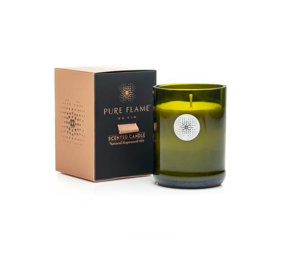PURE FLAME "Du Vin" VIN & BOIS kvepianti žvakė tikrame šampano butelyje, 260g