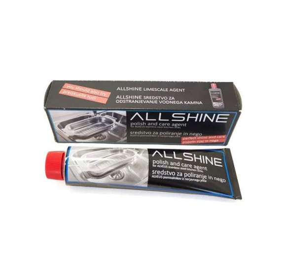 Alveus Allshine 150 ml – pasta nerūdijančio plieno kriauklių poliravimui ir priežiūrai. Priemonė, padėsianti išlaikyti dailią, estetišką plautuvės išvaizdą jūsų virtuvėje.