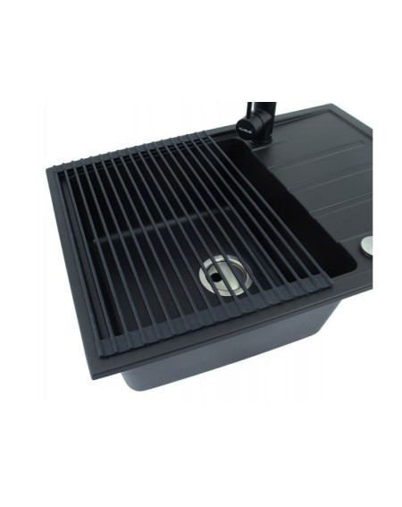 ALVEUS All Round padėkliukas virtuvei. Ši juodos spalvos metalinių strypelių padėkliuką galima naudoti kaip džiovinimo, nuvarvinimo pagrindą ar pasidėti karštus indus, puodus (iki 220 °C). Tai itin patogus priedas Jūsų virtuvės zonai, suteikiantis kasdienio naudojimo komforto. Renkantis padėkliuką įvertinkite savo turimos plautuvės plotį ir ilgį. Asortimente turime ir kitokių dydžių padėkliukų, tad galite rinktis jums tinkamiausią. Juoda padėkliuko spalva dera prie daugelio skirtingų plautuvių spalvų: nuo nerūdijančio plieno iki akmens masės. Ypač tinkamas su ALVEUS "Black Edition" kolekcija.