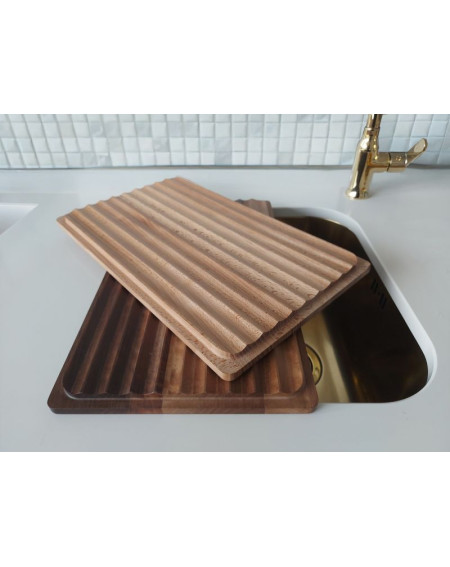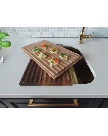 ALVEUS „ChefPro“ buko medienos pjaustymo lentelė – tai patvari ir funkcionali virtuvės priemonė, pagaminta iš aukštos kokybės buko medienos. Lentelės dizainas išsiskiria elegantiškomis banguotomis linijomis, kurios užtikrina saugų suėmimą ir patogų naudojimą. Taip pat bangelių pusę galima naudoti kaip dekoratyvinę patiekiant užkandžius. Viena lentelės pusė yra lygi, skirta įprastam pjaustymui, o kita turi subtilias bangeles.