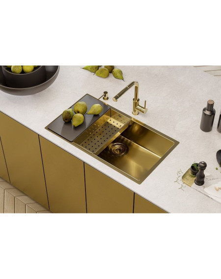 Galima rinktis iš penkių skirtingų atspalvių, kad priedas idealiai derėtų prie Jūsų ALVEUS Monarch kolekcijos plautuvės ar maišytuvo. Aukso, bronzos, vario, antracito ir nerūdijančio plieno atspalviai leis įnešti į jūsų virtuvės erdvę daugiau spalvingumo ir nuotaikos. Suderinamas su modeliais Stylux, Pure, Quadrix, Kombino, Crystalix, Karat, Intermezzo ir Quadrix 50-Granital.
