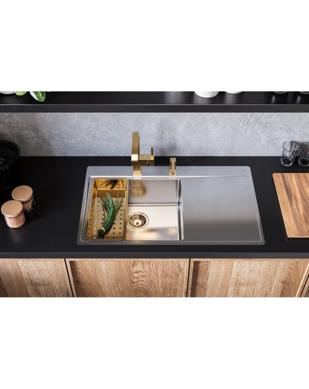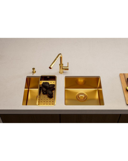 Galima rinktis iš penkių skirtingų atspalvių, kad priedas idealiai derėtų prie Jūsų ALVEUS Monarch kolekcijos plautuvės ar maišytuvo. Aukso, bronzos, vario, antracito ir nerūdijančio plieno atspalviai leis įnešti į jūsų virtuvės erdvę daugiau spalvingumo ir nuotaikos. Suderinamas su modeliais Stylux, Pure, Quadrix, Kombino, Crystalix, Karat, Intermezzo ir Quadrix 50-Granital.