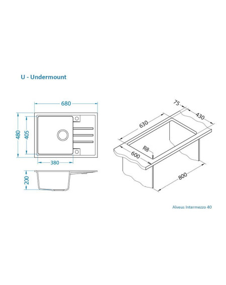 Alveus Intermezzo 40 - tai moderni, tiesių linijų plautuvė, tinkanti prie daugelio virtuvių interjero. Platus žemiškų spalvų pasirinkimas leidžia lengvai derinti ją prie bet kurios virtuvės. Plautuvė gali būti montuojama dviem būdais: po stalviršiu (U), paliekant atvirą nusausinimo zoną, arba klasikiniu būdu įstatant iš stalviršio viršaus (I). Renkantis "U" būdą - tinka spintelėms nuo 80 cm, o "I" - nuo 50 cm. Montavimo metu galima pasirinkti kurioje pusėje bus dubuo: kairėje ar dešinėje.