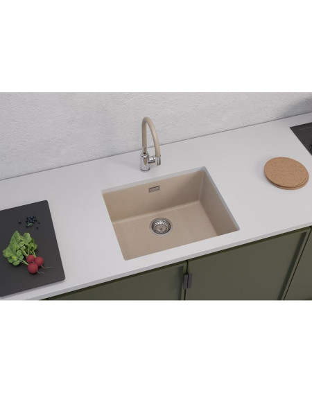 Plautuvė pagaminta iš aukštos kokybės granito kompozito, plautuvė yra atspari įbrėžimams, dėmėms ir temperatūrai, todėl yra itin praktiškas pasirinkimas kasdien naudojamai virtuvei. Plautuvei suteikiama 5 metų gamintojo garantija.