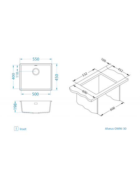 ALVEUS Omni 30 granitinė plautuvė, kuri pasižymi savo plačiu, erdviu dubeniu. Jame patogiai galima išplauti didesnius puodus, kepimo skardas, patogiai komplektuoti su sausinimo indais ar kilimėliais. 500x400x198 dubuo žavi ne tik savo pločiu, bet ir suteikia virtuvei modernų, šiuolaikišką įvaizdį. Plautuvę galima montuoti dviem būdais – kaip standartinę, įleidžiamą į stalviršį (I)(visiems stalviršiams) arba po stalviršiu (U). Montavimas po stalviršiu suderinamas su vandeniui atspariems stalviršiams - akmens, granito, kompozito paviršiais.