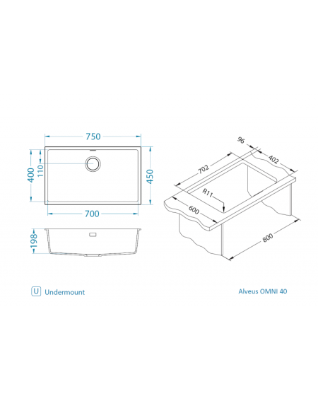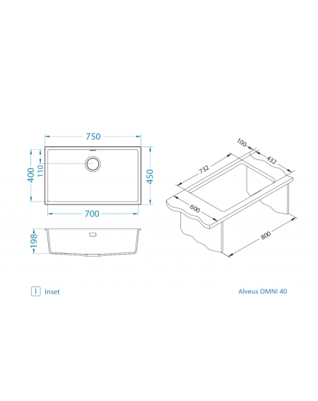 ALVEUS Omni 40 granitinė plautuvė, pasižyminti savo itin plačiu, erdviu dubeniu. Jame patogiai galima išplauti didelius puodus, kepimo skardas, patogiai komplektuoti su sausinimo indais ar kilimėliais. 700x400x198 dubuo žavi ne tik savo pločiu, bet ir suteikia virtuvei modernų, šiuolaikišką įvaizdį. Plautuvę galima montuoti dviem būdais – kaip standartinę, įleidžiamą į stalviršį (I)(visiems stalviršiams) arba po stalviršiu (U). Montavimas po stalviršiu suderinamas su vandeniui atspariems stalviršiams - akmens, granito, kompozito paviršiais.