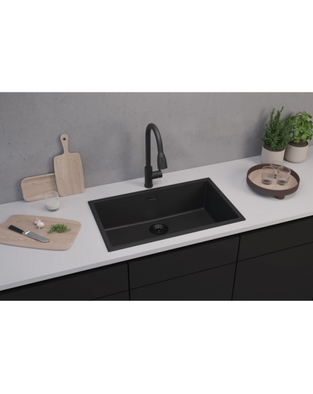 - Išskirtinai juodas komplektas. Plautuvė juodos matinės spalvos;