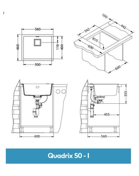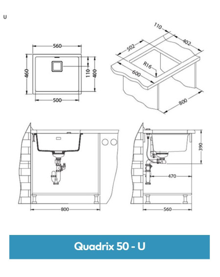 ALVEUS Quadrix 50 – granitinė plautuvė, išsiskirianti moderniu, minimalistiniu dizainu ir funkcionalumu. Tiesios, švarios linijos bei kvadratinė forma puikiai dera tiek prie šiuolaikinio, tiek prie klasikinio virtuvės stiliaus. Plautuvę galima montuoti dviem būdais – klasikinį įstatymą iš viršaus (I) arba po stalviršiu (U), todėl ją lengva pritaikyti pagal virtuvės dizainą ir pasirinktas medžiagas. Tinkama spintelėms nuo 60 cm (montuojant iš viršaus) arba nuo 80 cm (montuojant po stalviršiu).