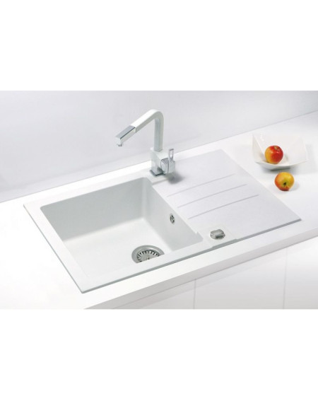 ALVEUS Rock 130 granitinė plautuvė. Tai patogi ir funkcionali plautuvė su plačia nusausinimo zona. Pilnam funkcionalumui komplekte pridedamas vietą taupantis sifonas ir "Pop-up" dugno vožtuvas su valdymo rankenėle.
