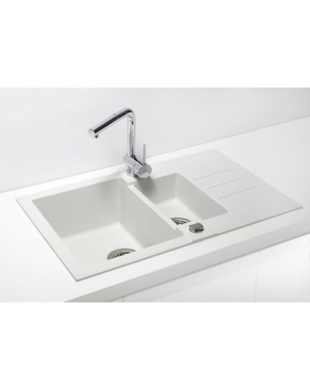 ALVEUS Rock 70 granitinė plautuvė. Tai patogi ir funkcionali plautuvė su sausinimo zona ir papildomu dubeniu. Sausinimo zona išpildo funkcionalumą ir prideda kasdienio naudojimo patogumo. Dubens pusę (kairę arba dešinę) galima pasirinkti montuojant. Papildomas dubuo puikiai pasitarnaus plaunant vaisius ar daržovėms, padalinant darbo zonas.