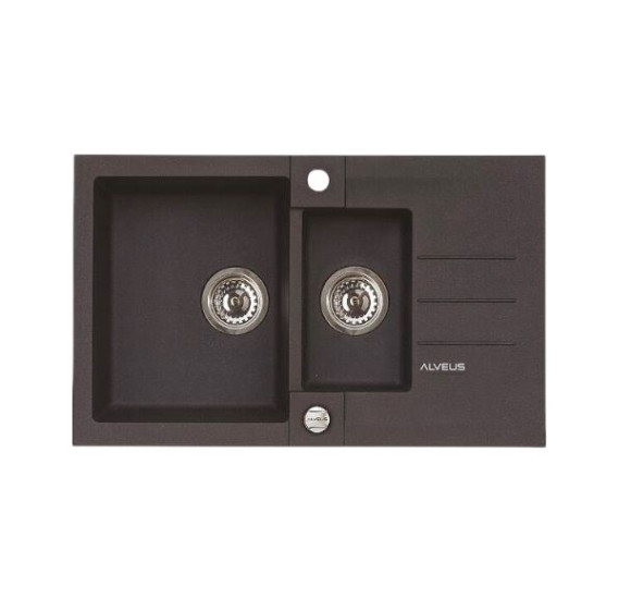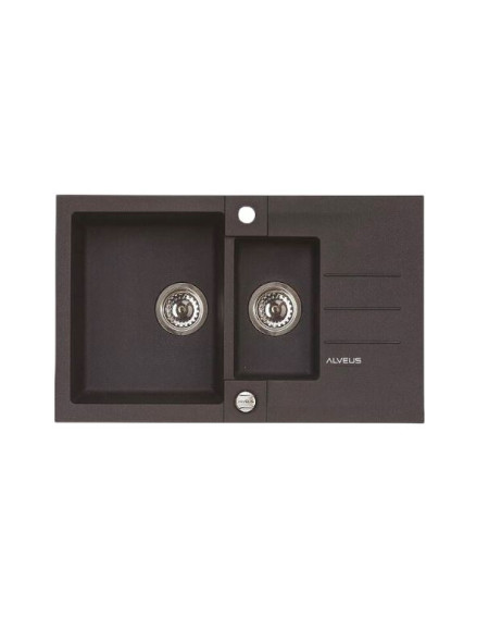 ALVEUS Rock 70 granitinė plautuvė. Tai patogi ir funkcionali plautuvė su sausinimo zona ir papildomu dubeniu. Sausinimo zona išpildo funkcionalumą ir prideda kasdienio naudojimo patogumo. Dubens pusę (kairę arba dešinę) galima pasirinkti montuojant. Papildomas dubuo puikiai pasitarnaus plaunant vaisius ar daržovėms, padalinant darbo zonas.