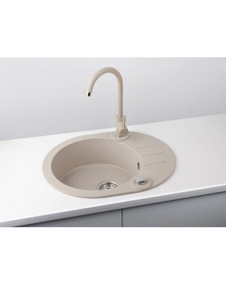 ALVEUS Roll 40 apvalios formos granitinė plautuvė su sausinimo plokštuma. Plautuvės komplekte yra "Pop-up" dugno vožtuvas su rankenėle ir vietą taupantis sifonas. Tai kompaktiška plautuvė, tinkanti net į mažas virtuves. Plautuvė montuojama klasikiniu būdu, įstatant iš viršaus.