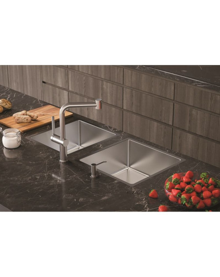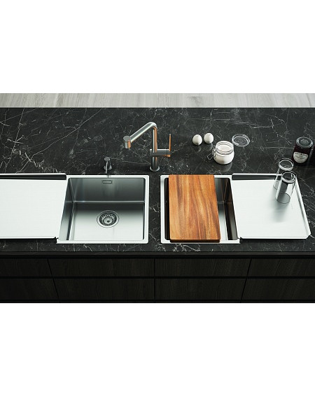 - Plautuvės gylis ir statūs kampai suteikia patogią erdvę plauti indus ir gaminti maistą;
