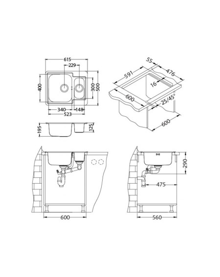 - Dubens matmenys: 340x400x190 ir 148x300x130;