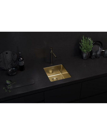 Plautuvės matmenys – 380x400 mm, o dubuo darbui – 340x400x195, todėl ji patogi kasdieniam maisto ruošimui ir indų plovimui. Talpina išplauti net ir didesnius puodus ar kepimo skardeles. Plautuvė tinkama spintelėms nuo 400 mm. Komplekte esantis dugno vožtuvas leidžia patogiai valdyti vandens nutekėjimą. Jis dera su plautuvės dizainu ir spalva - todėl sukuria vientisumą. Rekomenduojame papildomai įsigyti derantį maišytuvą ir sifoną plautuvei.