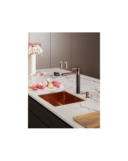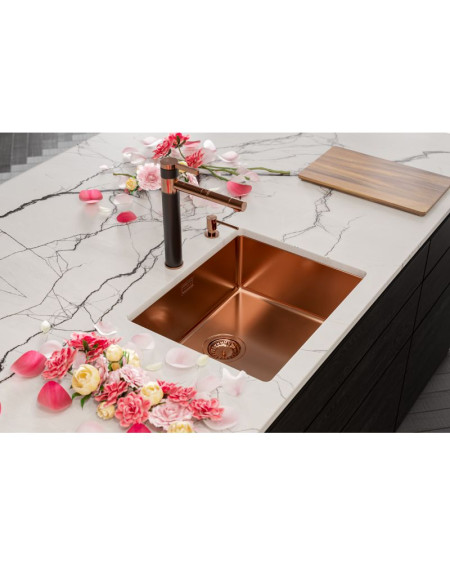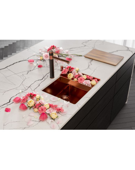 ALVEUS Monarch Kombino 50 - nerūdijančio plieno, montuojama po stalviršiu plautuvė, kuri išsiskiria atspalvių pasirinkimu, moderniu dizainu ir kasdienio naudojimo patogumu. PVD danga užtikrina ilgaamžį tarnavimą, suteikia prabangos pojūtį. O komplekte esantis dugno vožtuvas užbaigia dizainą ir papildo funkcionalumą. Tai plautuvė, kuri ne tik puikiai atlieka savo funkciją, bet ir praturtina virtuvės interjerą.