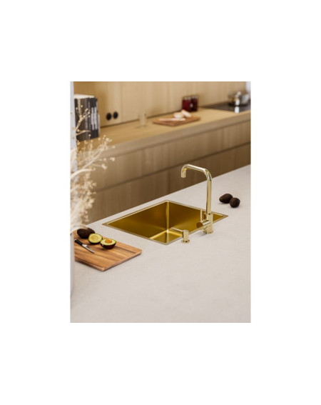 ALVEUS Monarch Kombino 50 – lygiai su stalviršiu arba ant stalviršio montuojama nerūdijančio plieno plautuvė, išsiskirianti subtiliais metalizuotais atspalviais ir moderniu dizainu. PVD danga ne tik suteikia virtuvei stilingą akcentą, bet ir užtikrina ilgaamžiškumą bei atsparumą kasdieniam naudojimui. Rekomenduojame plautuvę derinti su Monarch kolekcijos maišytuvais, dozatoriais, sausinimo indais ir kitais priedais. Taip išlaikysite vienodą dizainą, spalviškumą. Priedų spalvas tarpusavyje galima ir maišyti - taip siekiant sukurti nuotaikingą, išskirtinį virtuvės interjerą.