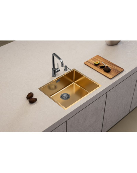 ALVEUS Monarch Kombino 50 - nerūdijančio plieno plautuvė, kuri išsiskiria atspalvių pasirinkimu, moderniu dizainu ir kasdienio naudojimo patogumu. Skirta montuoti lygiai su stalviršiu arba ant stalviršio viršaus. PVD danga užtikrina ilgaamžį tarnavimą, komplekte esantis dugno vožtuvas užbaigia dizainą ir papildo funkcionalumą. Tai plautuvė, kuri ne tik puikiai atlieka savo funkciją, bet ir praturtina virtuvės interjerą.