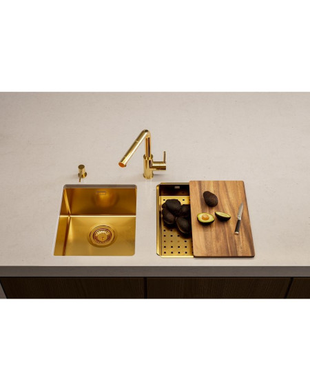 ALVEUS Monarch Quadrix 20 – kompaktiška, tačiau išskirtinai stilinga plautuvė, sukurta modernioms virtuvėms. Monarch kolekcijos PVD spalvos leidžia rinktis iš prabangių antracito, aukso, bronzos ar vario atspalvių, išlaikant išskirtinį blizgesį ir atsparumą kasdieniam naudojimui.