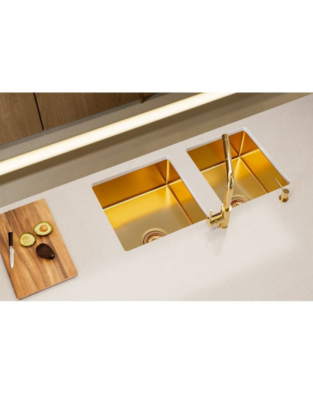 ALVEUS Monarch Quadrix 30 – tai modernaus ir laikui nepavaldaus dizaino plautuvė, kuri virtuvei suteikia subtilios prabangos bei išskirtinumo pojūtį. Monarch PVD danga ne tik užtikrina ilgaamžiškumą ir atsparumą įbrėžimams, bet ir suteikia paviršiui elegantišką metalinį spindesį, kuris išlieka ilgus metus. Galima rinktis iš keturių skirtingų metalizuotų atspalvių: aukso, bronzos, vario ir antracito. Rekomenduojame derinti su ALVEUS maišytuvais, dozatoriais ir kita įranga - taip išlaikysite vientisą virtuvės dizainą.