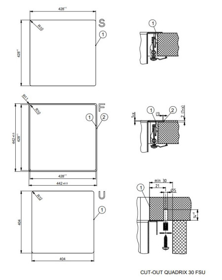 • Universalus montavimas – galima montuoti po stalviršiu (U), virš jo (S) ar lygiai su juo (F);