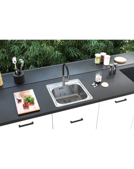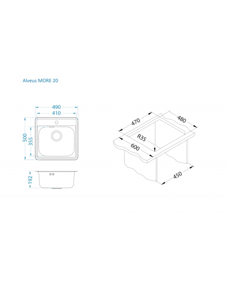 ALVEUS More 20 – tai nerūdijančio plieno plautuvė, kuri puikiai dera tiek mažesnėse virtuvėse, tiek moderniose erdvėse. Satino, pusiau blizgus paviršius atrodo estetiškai ir yra lengvai prižiūrimas. Erdvi, patogi ir pagaminta iš aukštos kokybės AISI 304 nerūdijančio plieno. Ši plautuvė – patikimas pasirinkimas kasdienai ir tvarus sprendimas ilgalaikiam naudojimui.