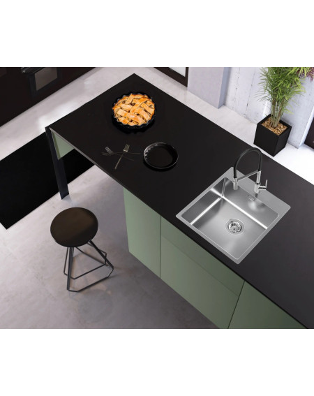 Ilgaamžė ir patvari nerūdijančio plieno plautuvė su šlifuotu paviršiumi. Ši plautuvė turi paruoštą angą maišytuvui, komplekte yra dugno vožtuvas su persipylimu, todėl papildomai daugiau beveik niekuo nereikės rūpintis. Galimas montavimas lygiai su stalviršiu arba virš stalviršiu. Plautuvė tinkama spintelėms, nuo 600mm pločio. Kompaktiška, tačiau erdvi ir gili plautuvė garantuos patogų kasdienį naudojimą, komfortišką maisto gaminimą ir indų plovimą.