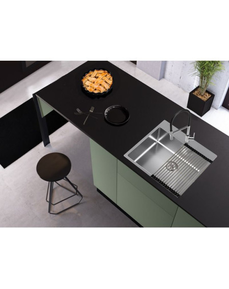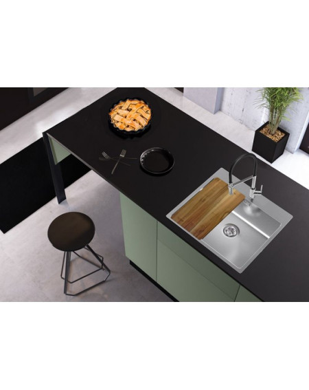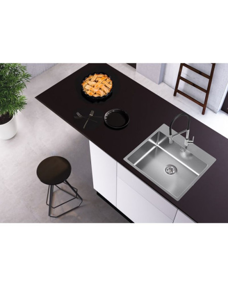 Ilgaamžė ir patvari nerūdijančio plieno plautuvė su šlifuotu paviršiumi. Ši plautuvė turi paruoštą angą maišytuvui, komplekte yra dugno vožtuvas su persipylimu, todėl papildomai daugiau beveik niekuo nereikės rūpintis. Galimas montavimas lygiai su stalviršiu arba virš stalviršiu. Plautuvė tinkama spintelėms, nuo 600mm pločio. Kompaktiška, tačiau erdvi ir gili plautuvė garantuos patogų kasdienį naudojimą, komfortišką maisto gaminimą ir indų plovimą.