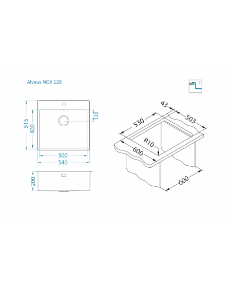 ALVEUS Nox 120 - tai tobulas patvarumo ir inovacijų derinys. Kiekvienas "Nox" kolekcijos plautuvės modelis komplekte turi derantį dugno vožtuvą su persipylimu. Paviršius šlifuotas, todėl išvengiama subraižymo rizikos, plautuvė ilgai išlaiko savo dailią, pradinę išvaizdą.
