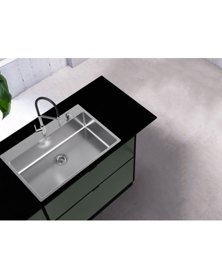 Ilgaamžė ir patvari nerūdijančio plieno plautuvė su šlifuotu paviršiumi. Ši plautuvė turi paruoštą angą maišytuvui, komplekte yra dugno vožtuvas su persipylimu, todėl papildomai daugiau beveik niekuo nereikės rūpintis. Galimas montavimas lygiai su stalviršiu arba virš stalviršiu. Plautuvė tinkama spintelėms, nuo 800mm pločio. Kompaktiška, tačiau erdvi ir gili plautuvė garantuos patogų kasdienį naudojimą, komfortišką maisto gaminimą ir indų plovimą.