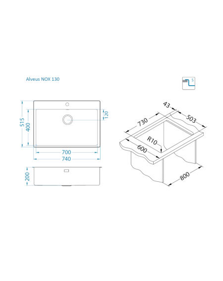 ALVEUS Nox 130 - tai tobulas patvarumo ir inovacijų derinys. Kiekvienas "Nox" kolekcijos plautuvės modelis komplekte turi derantį dugno vožtuvą su persipylimu. Paviršius šlifuotas, todėl išvengiama subraižymo rizikos, plautuvė ilgai išlaiko savo dailią, pradinę išvaizdą.
