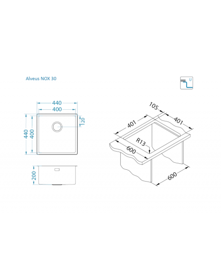 ALVEUS NOX 30 – tai šlifuoto paviršiaus nerūdijančio plieno plautuvė, kuri išsiskiria universaliu montavimo būdu ir praktišku dizainu. Pilnam funkcionalumui - komplekte pridedamas dugno vožtuvas su persipylimu. Plautuvę galima naudoti vieną arba derinti su kitomis Nox plautuvėmis, sukuriant papildomą darbo zoną.