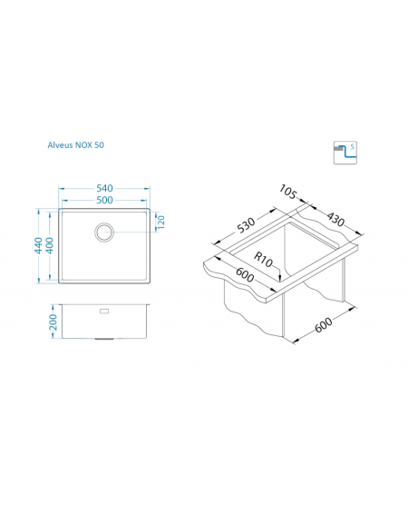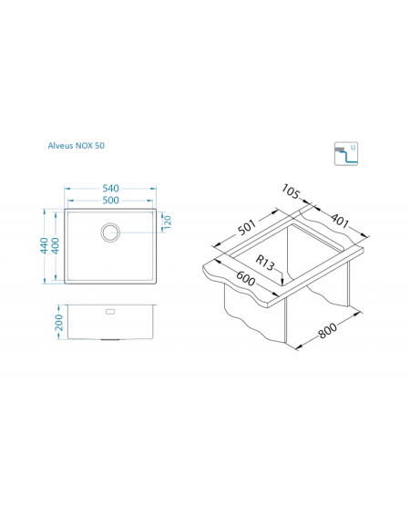 ALVEUS NOX 50 – tai šlifuoto paviršiaus nerūdijančio plieno plautuvė, kuri išsiskiria universaliu montavimo būdu ir praktišku dizainu. Erdvi konstrukcija suteikia patogumo kasdieniam naudojimui, o komplekte esantis dugno vožtuvas išpildo visą plautuvės dizainą bei funkcionalumą.
