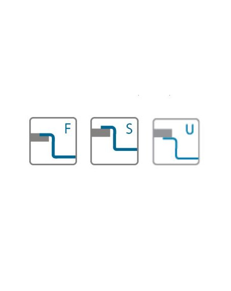 - Universalus montavimas: įleidžiama lygiai su stalviršiu (F), montuojama ant stalviršio (S) arba montuojama po stalviršiu (U);