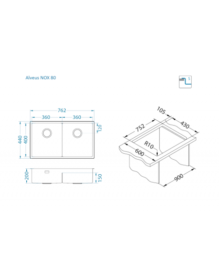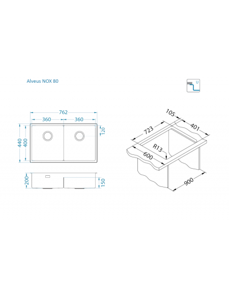 ALVEUS Nox 80 - tai tobulas patvarumo ir inovacijų derinys. Šis modelis pasižymi patogia savybe - žema pertvara, padalijančia plautuvės dubenį į dvi dalis, taip sukuriant skirtingas darbo zonas. Dėl šios savybės išgaunamas universalumas įvairioms virtuvės užduotims atlikti. Kiekvienas "Nox" kolekcijos plautuvės modelis komplekte turi derantį dugno vožtuvą su persipylimu.