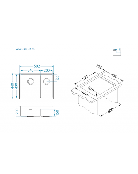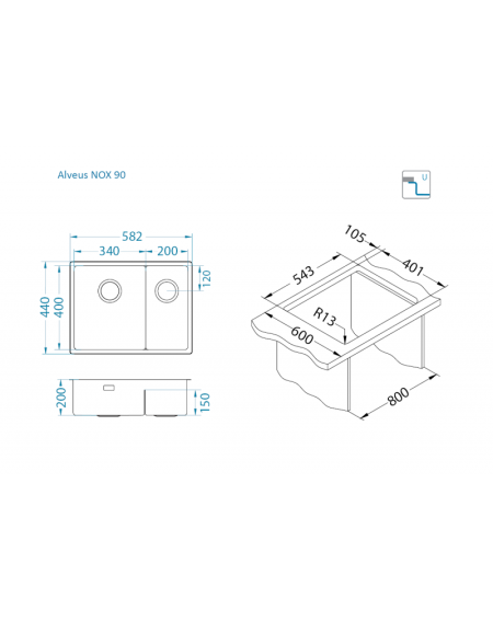 ALVEUS Nox 90 - tai tobulas patvarumo ir inovacijų derinys. Šis modelis pasižymi patogia savybe - žema pertvara, padalijančia plautuvės dubenį į dvi dalis, taip sukuriant skirtingas darbo zonas. Dėl šios savybės išgaunamas universalumas įvairioms virtuvės užduotims atlikti. Kiekvienas "Nox" kolekcijos plautuvės modelis komplekte turi derantį dugno vožtuvą su persipylimu.