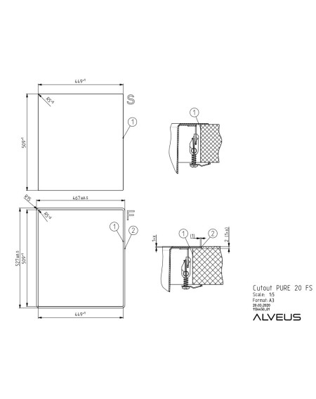 ALVEUS Pure 20 – nerūdijančio plieno plautuvė, išsiskirianti satininio paviršiaus (pusiau blizgaus, pusiau matinio) dubeniu ir šlifuoto paviršiaus kraštais. Skirtingų tekstūrų derinys suteikia plautuvei modernų, estetišką įvaizdį ir leidžia ją lengvai priderinti tiek prie minimalistinės, tiek prie prabangios virtuvės aplinkos. Šią plautuvę galima montuoti dviem būdais: įleisti į stalviršį (F) arba montuoti virš stalviršio, paliekant ploną kraštelį aukščiau (S). Įledžiamam (F) būdui plautuvė gali būti montuojama ant drėgmei atsparaus stalviršio: natūralaus akmens ar kompozito, kuris paruošiamas ir išfrezuojamas pagal brėžinį.