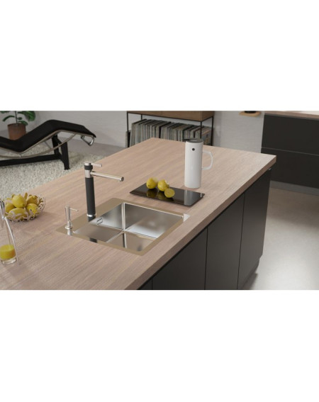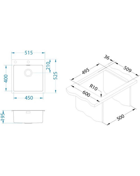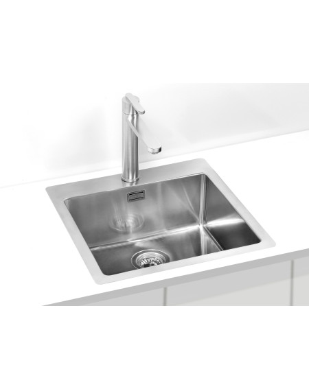 Erdvus 450x400x195 mm dubuo suteikia pakankamai vietos patogiam indų plovimui bei maisto ruošimui, o bendri matmenys (515x525 mm) užtikrina, kad plautuvė puikiai tilps net į spinteles nuo 500 mm pločio.