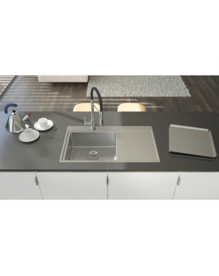 Pagaminta iš aukštos kokybės nerūdijančio plieno, ši plautuvė pasižymi ilgaamžiškumu, atsparumu dėvėjimuisi ir lengva priežiūra. Komplekte esantis „QuickClose“ dugno vožtuvas leidžia patogiai reguliuoti vandens nutekėjimą. Plautuvę galima įleisti į stalviršį (F) arba montuoti iš viršaus (S).