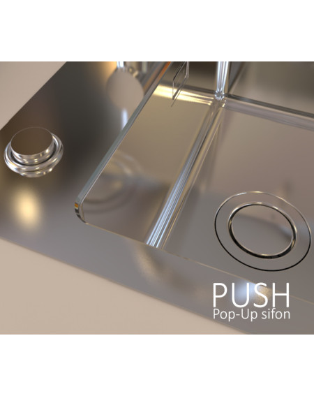 Komplekte esantis sifonas su "Push Pop-Up“ dugno vožtuvu, valdomu paspaudžiamu mygtuku, leidžia patogiai atidaryti ar uždaryti vandens nutekėjimą nekišant rankų į vandenį. Tai ne tik suteikia patogų naudojimą, bet ir užtikrina higieną virtuvėje. Komplekte beveik viskas ko reikia virtuvės plautuvės komplektacijai - belieka tik išsirinkti Jums patinkantį maišytuvą! Visos angos paruoštos, tad jums nereikės sukti galvos ir papildomai užsakyti skylių išpjovimo maišytuvui ar rankenėlei.