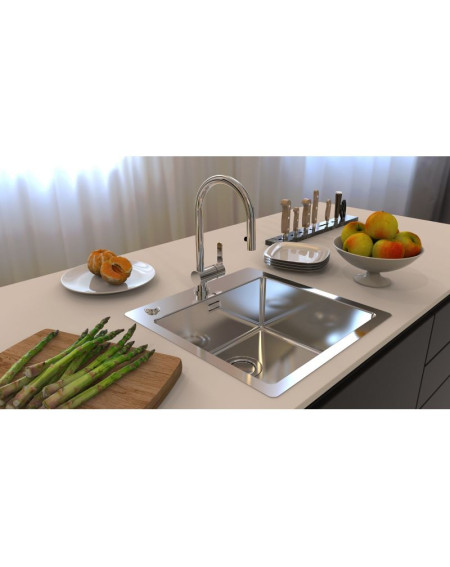 Erdvus 450x400x195 mm dubuo suteikia pakankamai vietos patogiam indų plovimui bei maisto ruošimui, o bendri matmenys (515x525 mm) užtikrina, kad plautuvė puikiai tilps net į spinteles nuo 500 mm pločio.