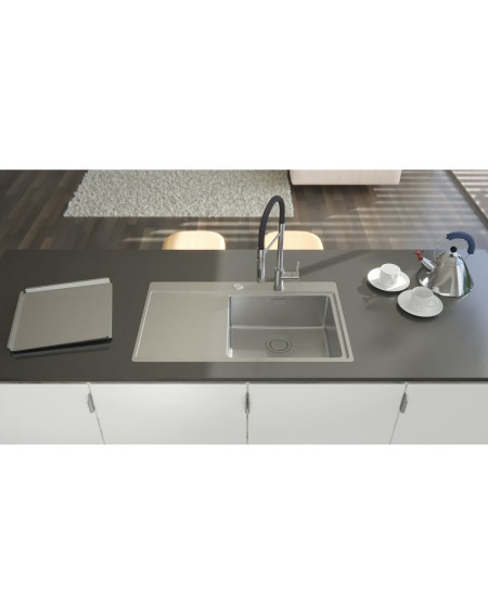 Pagaminta iš aukštos kokybės nerūdijančio plieno, todėl yra atspari dėvėjimuisi ir lengvai prižiūrima. Komplekte esantis „Push Pop-Up“ dugno vožtuvas su rankenėle leidžia patogiai valdyti vandens nutekėjimą, nekišant rankų į vandenį – praktiška ir higieniška detalė. Universalūs montavimo būdai leidžia pasirinkti plautuvės integraciją pagal virtuvės dizainą – ją galima įleisti į stalviršį (F) arba montuoti iš viršaus (S).