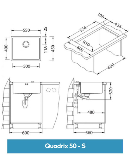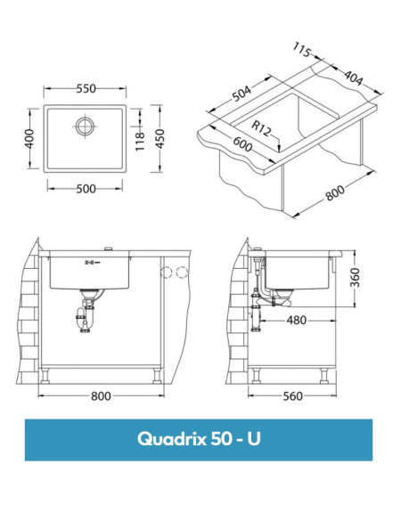 Ši plautuvė tinka spintelėms nuo 600 mm pločio (F ir S montavimo būdais) arba nuo 800 mm pločio (U montavimas), todėl ją lengva pritaikyti įvairaus dydžio virtuvėms „Quadrix 50“ galima naudoti kaip atskirą plautuvę arba derinti su kita „Quadrix“ serijos plautuve, taip sukuriant papildomą darbo zoną maisto ruošimui ar indų plovimui – tai ypač patogu erdviose virtuvėse ar profesionaliuose sprendimuose.