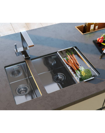 ALVEUS Quadrix 50 – modernaus, nesenstančio dizaino plautuvė. 200 mm gylio dubuo užtikrina maksimalų patogumą kasdieniams darbams, o universalus montavimas leidžia ją pritaikyti bet kokiai virtuvei. Galima montuoti vieną arba derinti kaip papildomą darbo erdvę kartu su kita Quadrix plautuve.