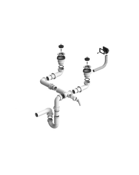 ALVEUS sifonas dvigubai plautuvei su užkemšamu ventiliu, 2xSP 114-PP-114