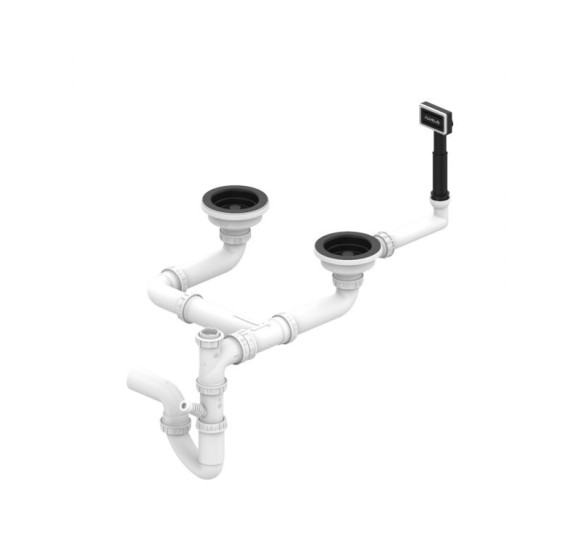 Šis sifono komplektas tinkamas naudoti su dvigubomis ALVEUS prekinio ženklo plautuvėmis, kurių skylės yra 114mm skersmens. Sifonas pagamintas iš plastiko bei nerūdijančio plieno, lengvai ir nesudėtingai montuojamas.