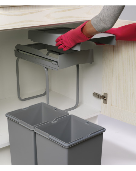 ALVEUS "Albio" šiukšlių rūšiavimo sistemos bei šiukšliadėžės sukurtos taip, kad garantuotų kasdienį patogumą. Ši sistema montuojasi į spinteles, kurių plotis 30cm ir daugiau. Mechanizmas išvažiuojantis, tinkamas montuoti į atsiveriančias spinteles. Konteinerio dangtelis neleidžia sklisti nemaloniems kvapams.