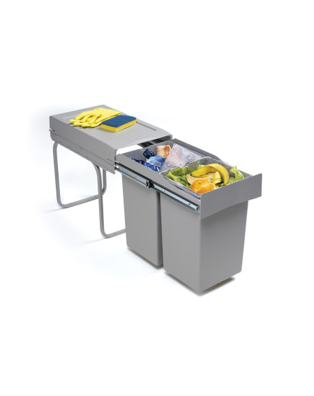 ALVEUS Albio 20 šiukšliadėžė su dviem 14l skyriais. Du vienodo dydžio skyreliai leis patogiai išrūšiuoti atliekas, o visuomet vienoje vietoje pasiliekantis dangtelis atliks ir lentynėlės funkciją. Ant jo galima patogiai pasidėti šiukšlių maišelius, pirštines ar kitas smulkias priemones virtuvei.