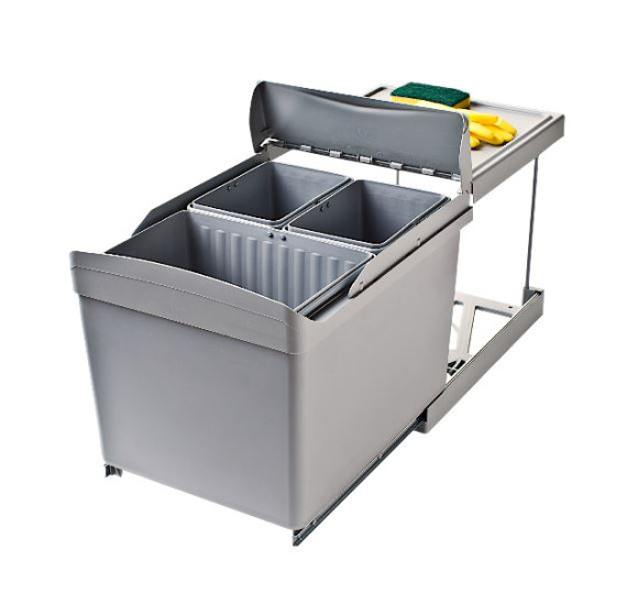 ALVEUS "Albio" šiukšlių rūšiavimo sistemos bei šiukšliadėžės sukurtos taip, kad garantuotų kasdienį patogumą. Ši sistema montuojasi į spinteles, kurių plotis 45 cm ir daugiau. Mechanizmas išvažiuojantis, tinkamas montuoti į atsiveriančias spinteles. Konteinerio dangtelis neleidžia sklisti nemaloniems kvapams.